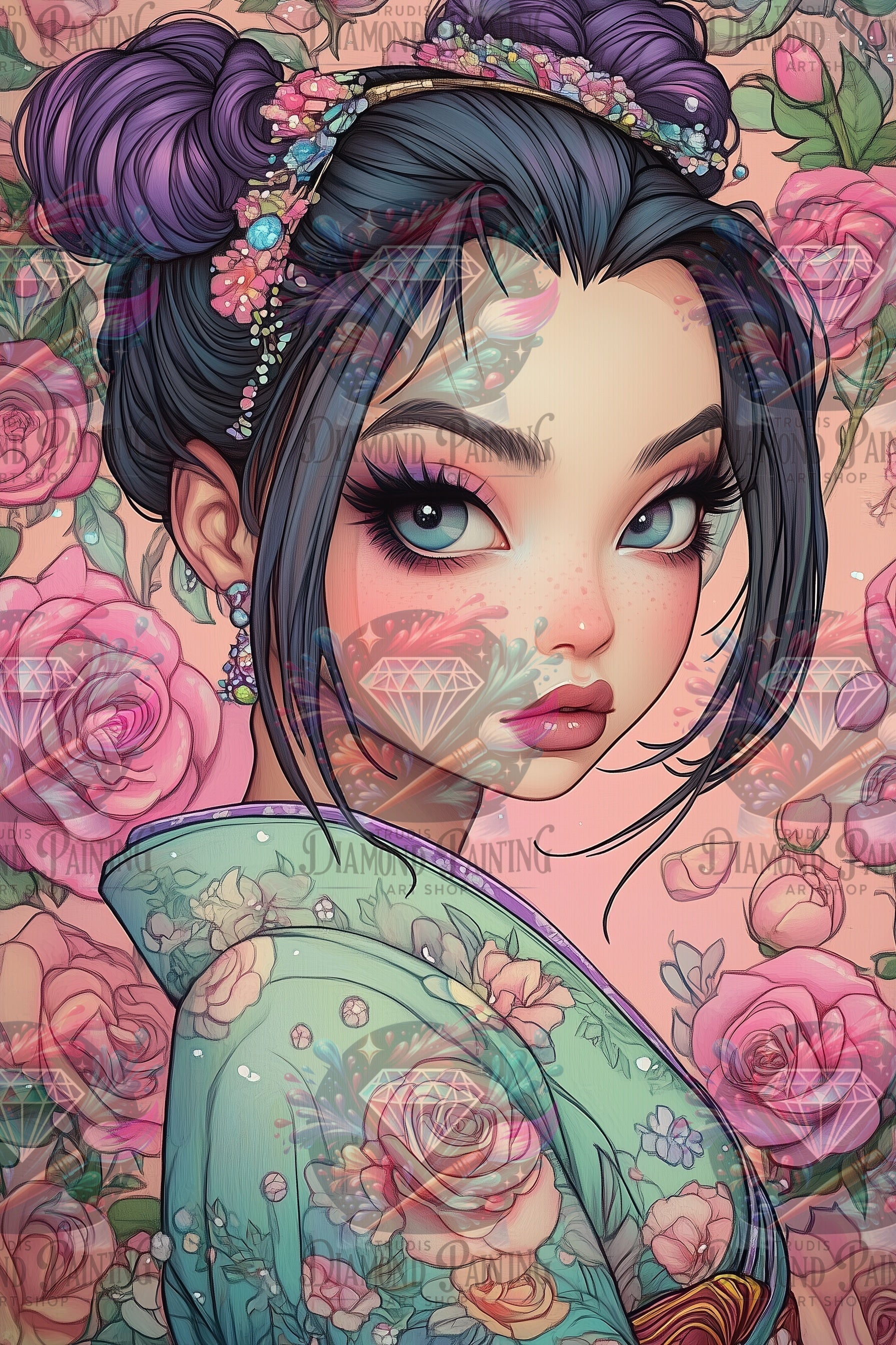 Diamond Painting Die Stille unter dem Veilchenkranz von Trudis_ai_art