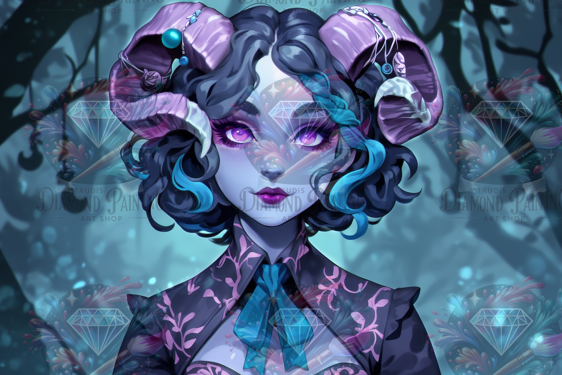 Diamond Painting Die Stille unter dem Veilchenkranz von Trudis_ai_art